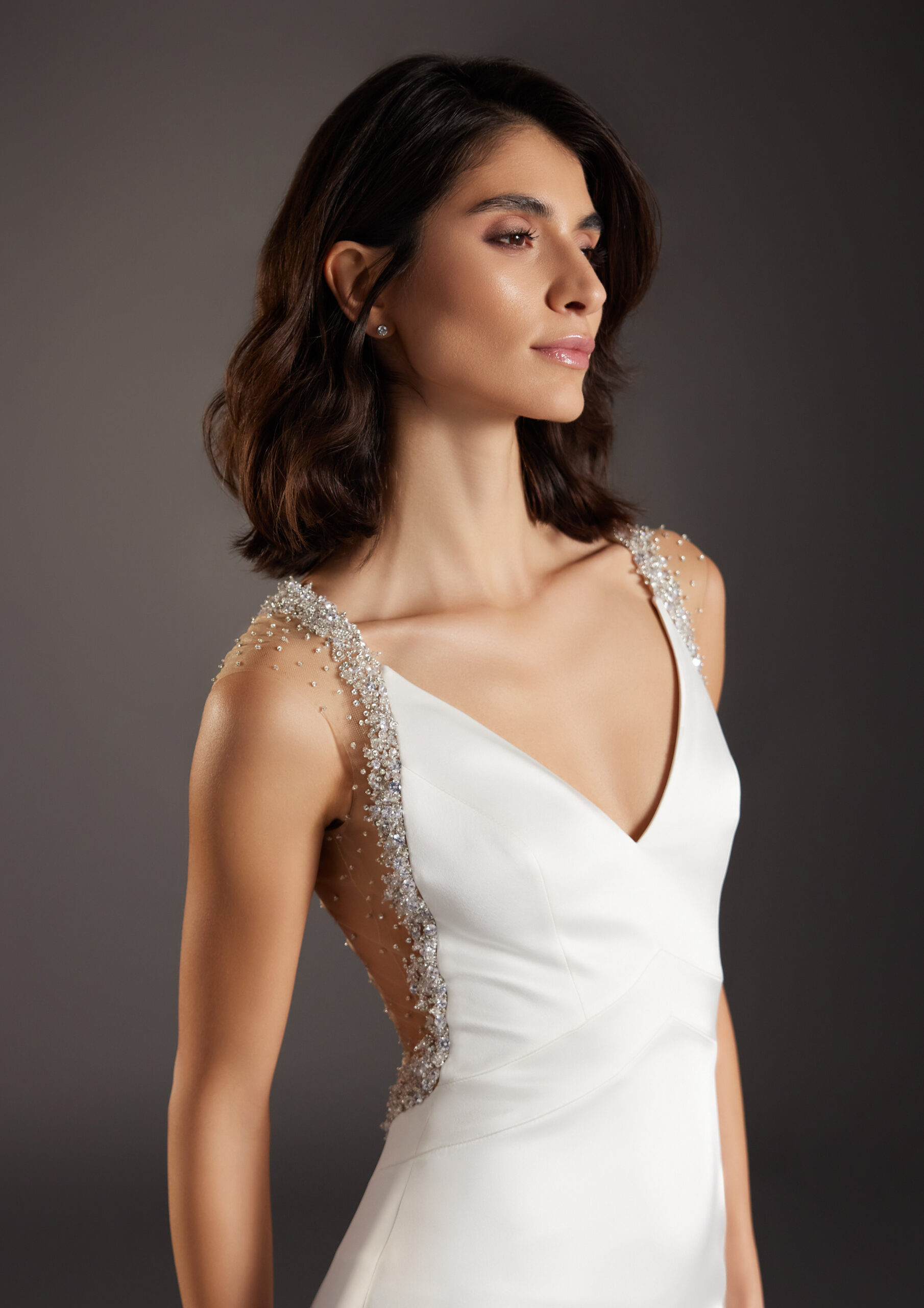 Για νύφες που προτιμούν λιτό στυλ και γραμμές που αγκαλιάζουν τη σιλουέτα, η σειρά Atelier προσφέρει minimal και sheath φορέματα με couture φινέτσα.